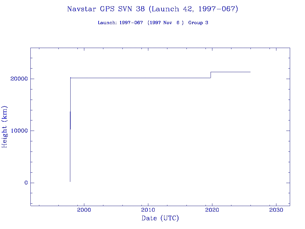 | Navstar GPS SVN 38 (Launch 42, 1997-067) | 1 | 0 | 0 | 0 | 0 | 1 | 1 | 0 | 0 |  |  |  |
