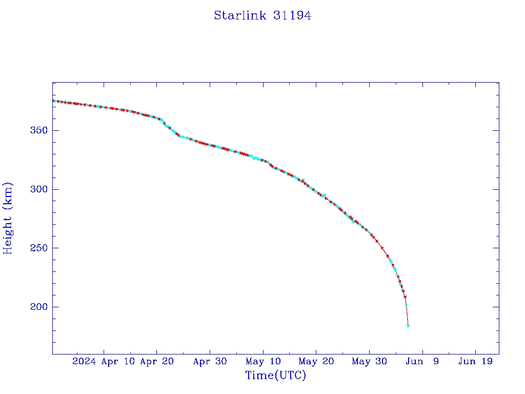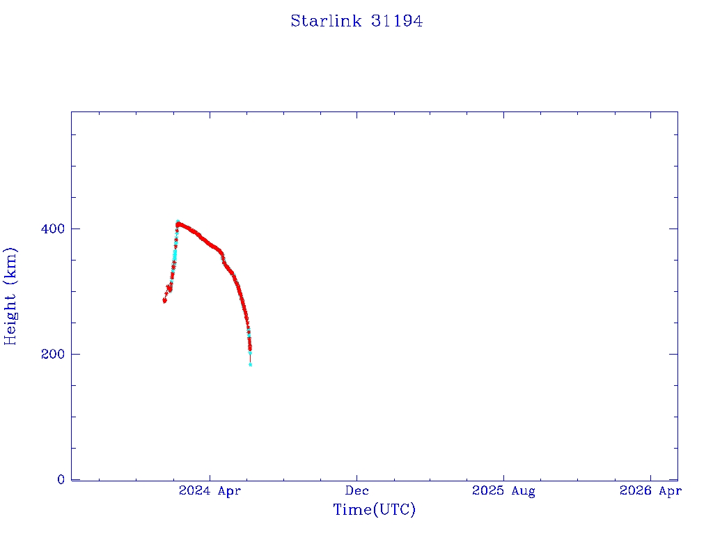 | Starlink 31194 | S58792 | F | 2024 Jan 15 | 2024 Apr 25 | 2024 Jun 6 |  |  |  |