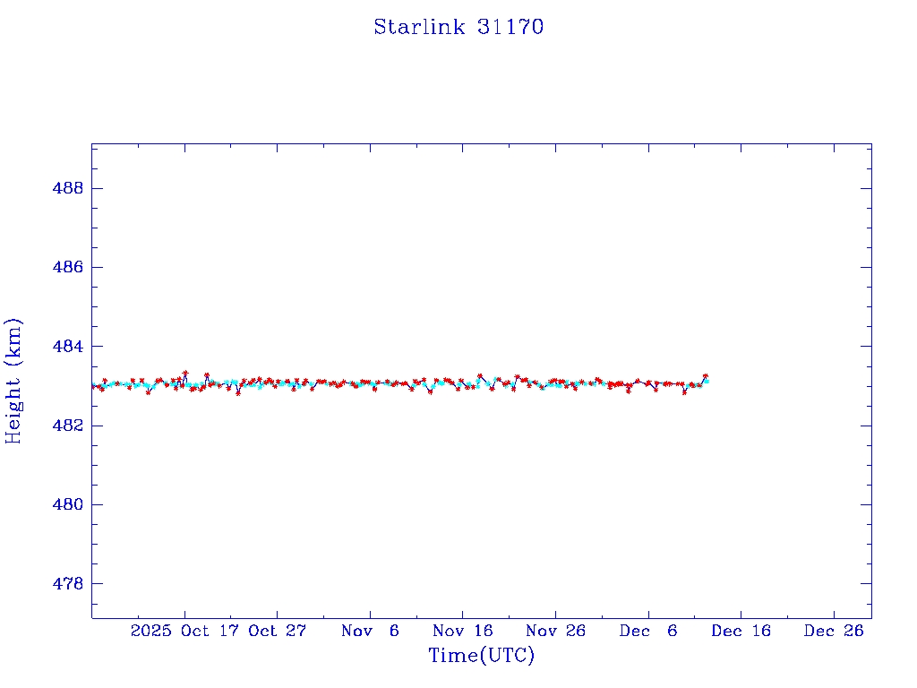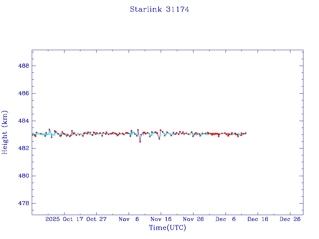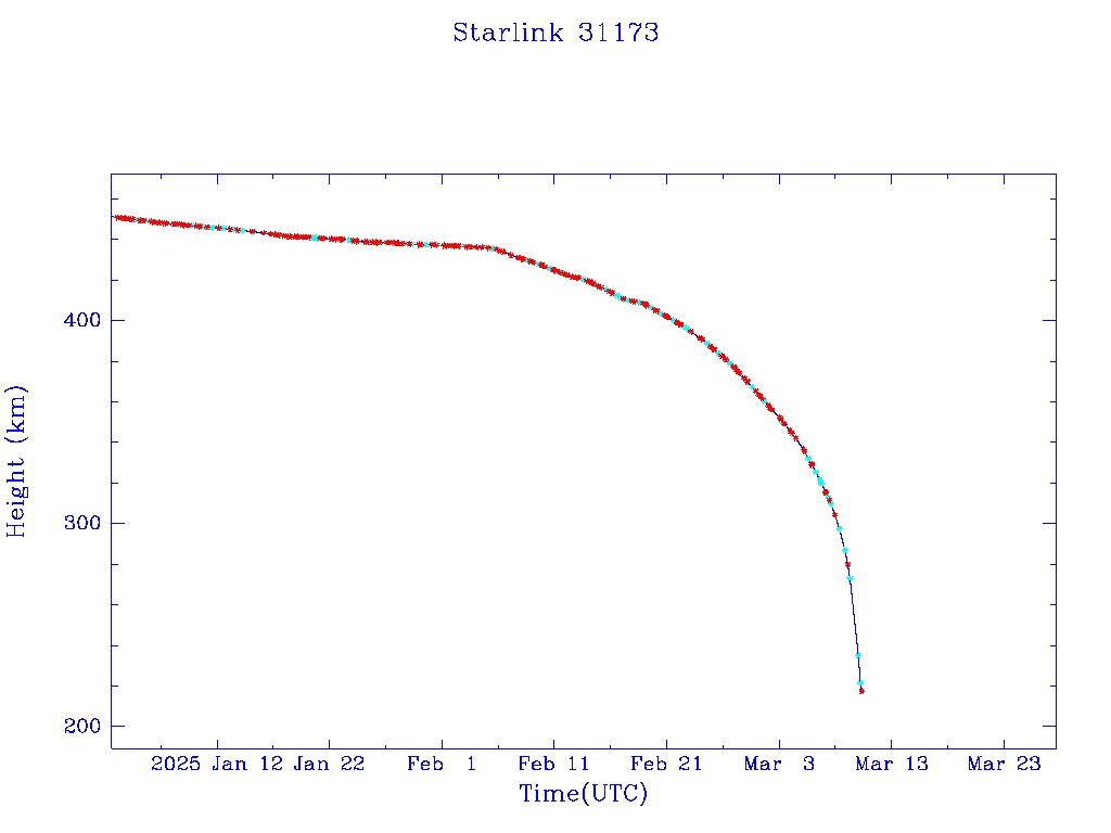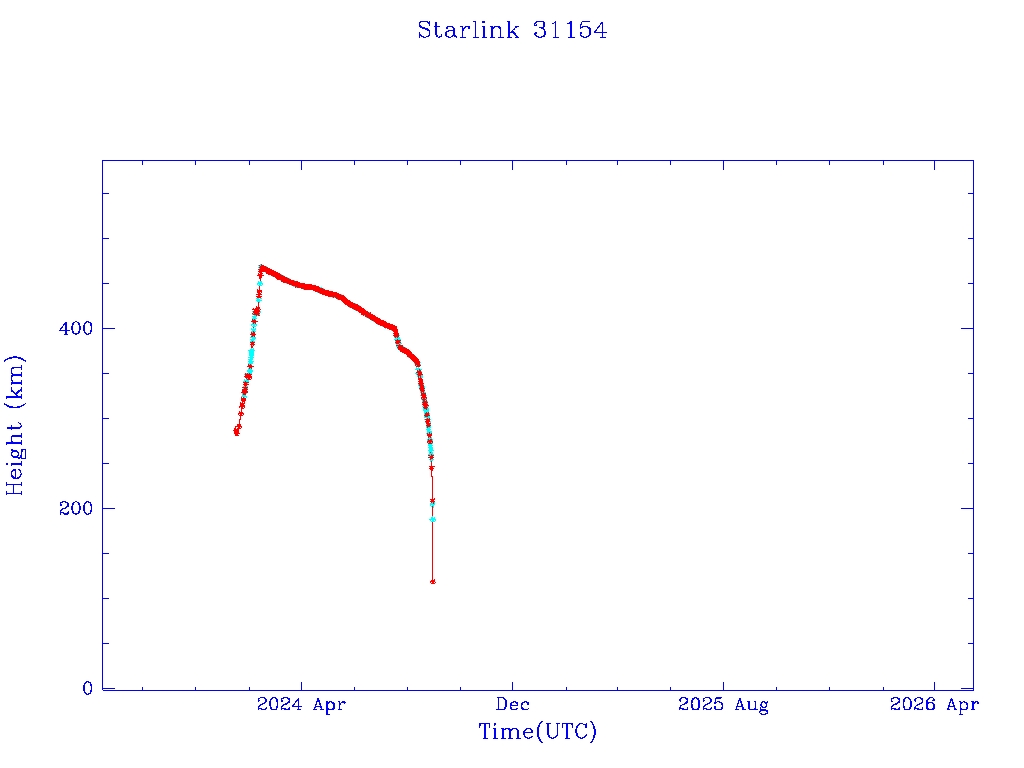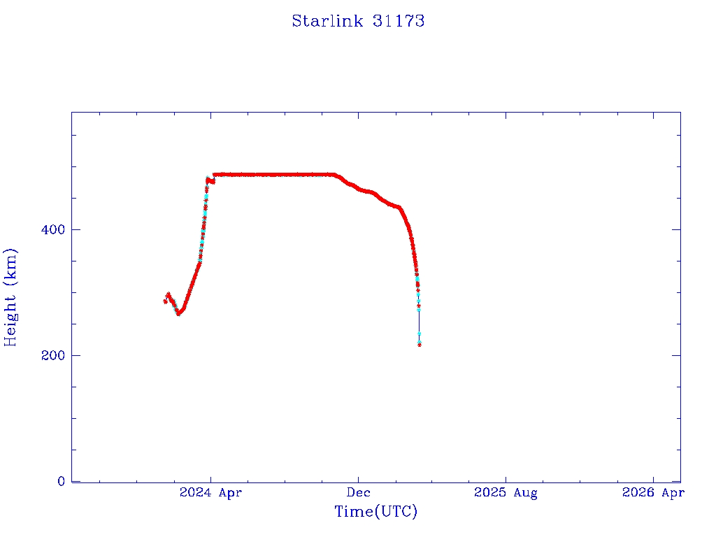 | Starlink 31173 | S58802 | R | 2024 Jan 15 | 2025 Feb 19? | 2025 Mar 10 |  |  |  |