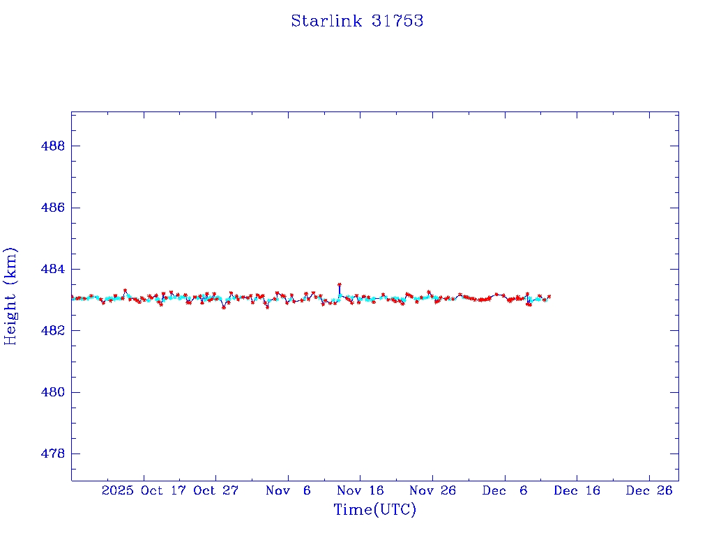 | Starlink 31653 | S59485 | R | 2024 Apr 13 | 2025 Feb 15? | 2025 Feb 25 |  |  |  |