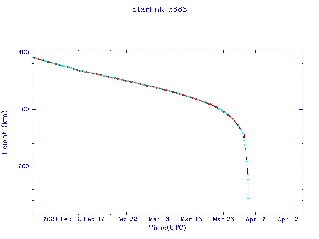 | Starlink 3686 | S52279 | R | 2022 Apr 21 | 2023 Dec 20 | 2024 Mar 30 |  |  |  |